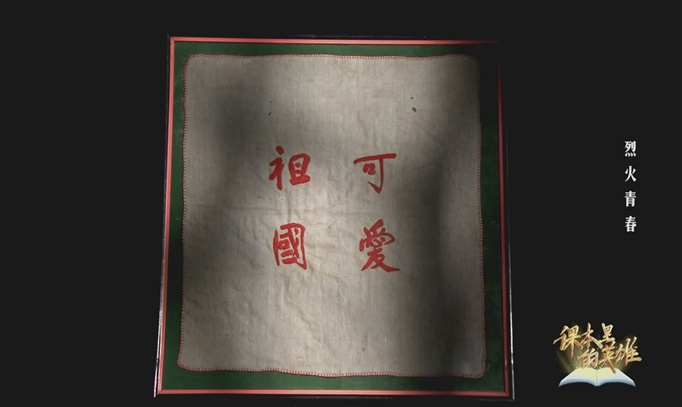 上面绣有“可爱祖国”四个大字