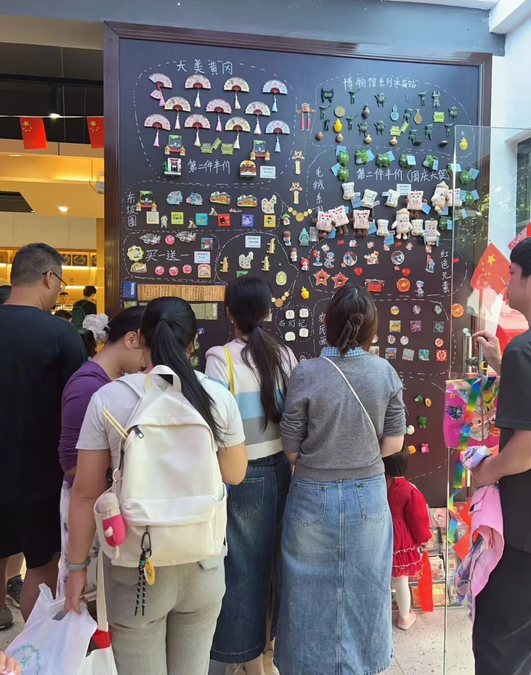 “快看这个!拉开居然是《寒食帖》!”10月14日,在东坡赤壁文创店,大学生李然被展示墙上的冰箱贴吸引,拿起一款轻轻一转,东坡肉、东坡饼的图案伴着诗词浮现;展示墙前,举着手机拍照的游客络绎不绝,店里满是发现惊喜的赞叹声。