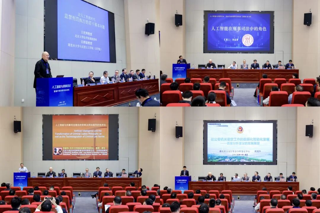 主题报告环节由中国人民大学法学院教授、博士生导师、中南财经政法大学“文澜”特邀教授何家弘主持。北京大学法学院、塔里木大学马克思主义学院教授王世洲,中国人民大学法学院教授、博士生导师刘品新,苏州大学法学院教授、博士生导师李晓明,湖北省公安厅资金分析鉴定中心黄国华,中南财经政法大学刑事司法学院院长、教授、博士生导师董邦俊,湖北今天律师事务所管理合伙人刘丽伟,围绕人工智能在刑事司法实务中的应用、角色定位、理念变革、技术伦理、智能裁判、错案防范、刑事辩护等议题展开深入探讨。报告内容涵盖《论人工智能时代监禁刑罚执行的若干基本问题》《人工智能在刑事司法中的角色》《人工智能与刑事司法理念的变革及刑法规范的技术化》《论公安机关鉴定工作的数据化智能化发展》《人工智能时代刑事错案防范体系之构建》《人工智能与刑事辩护》等前沿课题,展现了人工智能技术在提升司法效率、保障司法公正方面的潜力与挑战。大连海事大学教授、博士生导师敦宁,武汉大学法学院副教授陈金林参加与谈。