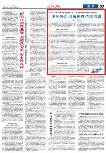 “十四五”以来,外汇市场功能更加完备,市场深度拓展。中国人民银行副行长、国家外汇管理局局长朱鹤新表示,外汇市场有足够的容量承接各类交易,为高效配置外汇资源创造良好条件。