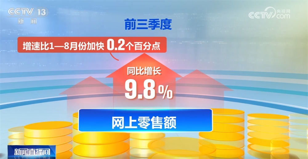 此外,新型消费加快增长。其中,线上消费持续向好,前三季度,网上零售额同比增长9.8%,增速比1—8月份加快0.2个百分点;绿色消费较快增长,高能效等级家电销售持续高速增长。专家指出,“人工智能+消费”应用广泛,新技术、新应用加速进入人们生活,有效满足了百姓消费升级需求。