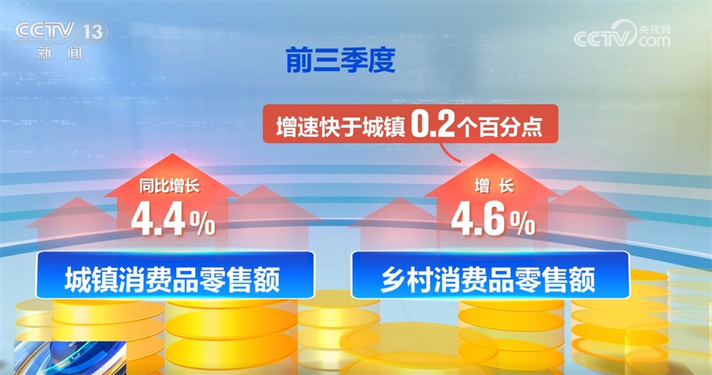 国家发展改革委国家信息中心宏观经济研究室副主任邹蕴涵称:“农村居民的人均可支配收入在前三季度其实增长了6%,实际上高于城镇的1.5个百分点,也高于全国的平均水平。在这样一个收入的支撑之下,实际上农村的居民消费需求在不断释放。”
