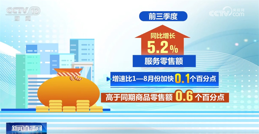 今年以来,我国服务消费提质升级。前三季度,服务零售额同比增长5.2%,增速比1—8月份加快0.1个百分点,高于同期商品零售额0.6个百分点。在系列政策措施的带动下,服务消费需求加速释放。