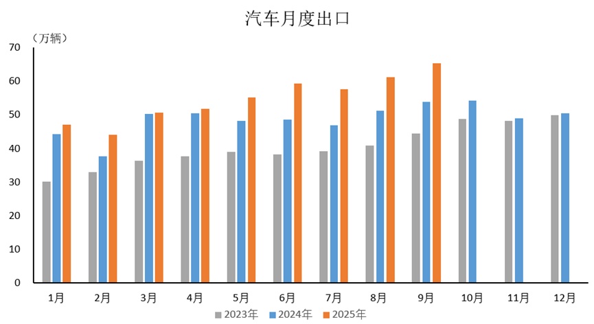 2025年9月,汽车出口65.2万辆,环比增长6.7%,同比增长21%。