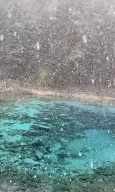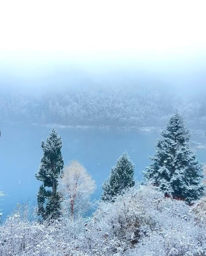 10月19日至10月20日,四川九寨沟迎来今年入秋以来首场降雪,部分地方树林银装素裹,雪花飘入湛蓝色的海子,碧水、彩林与白雪相映,半冬半秋,美不胜收。