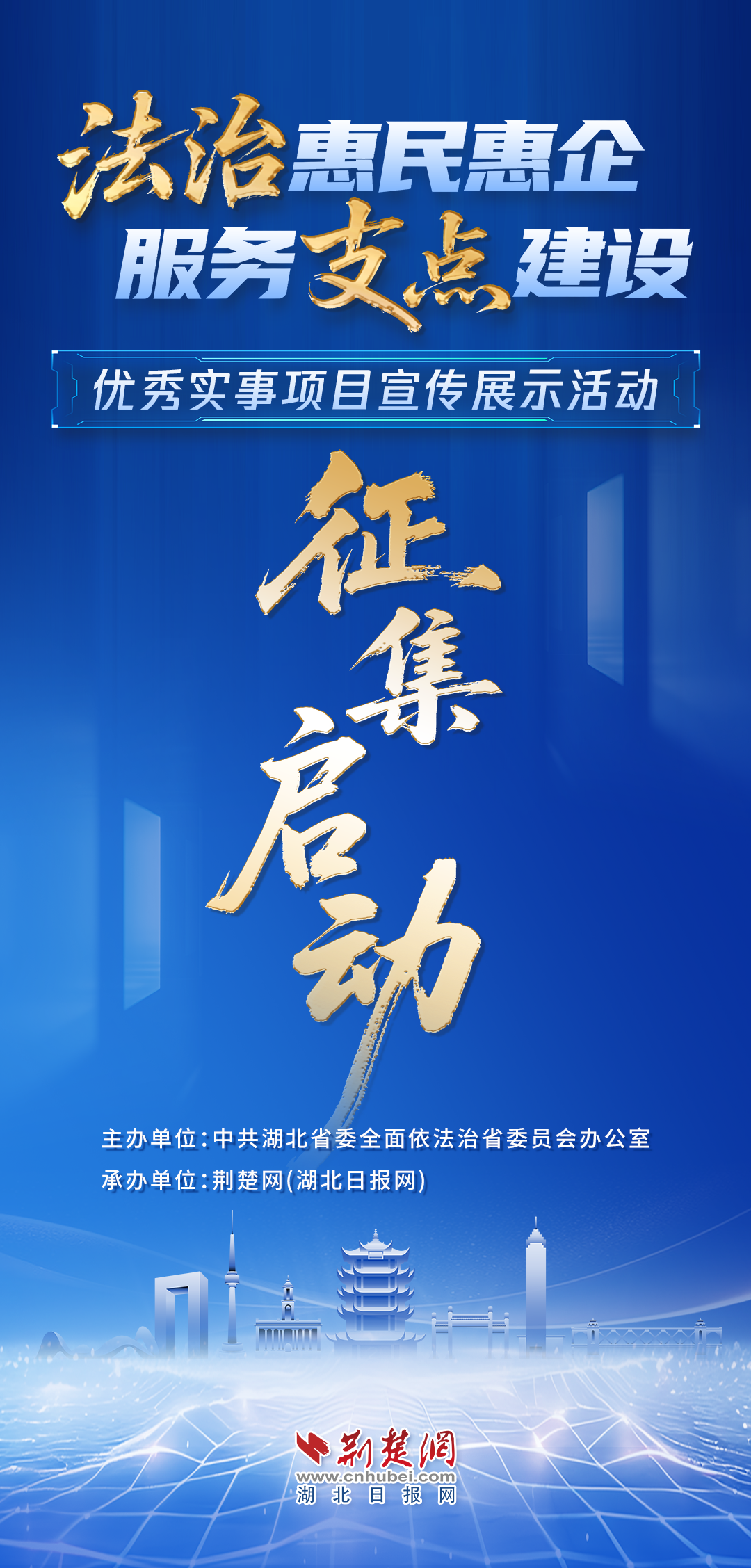 荆楚网(湖北日报网)讯(记者肖慧婷 通讯员王相生)近日,记者从湖北省委全面依法治省委员会办公室获悉,为深入推进法治惠民惠企办实事工作,服务和保障支点建设,省委依法治省办在全省开展“法治惠民惠企 服务支点建设”优秀实事项目宣传展示活动。