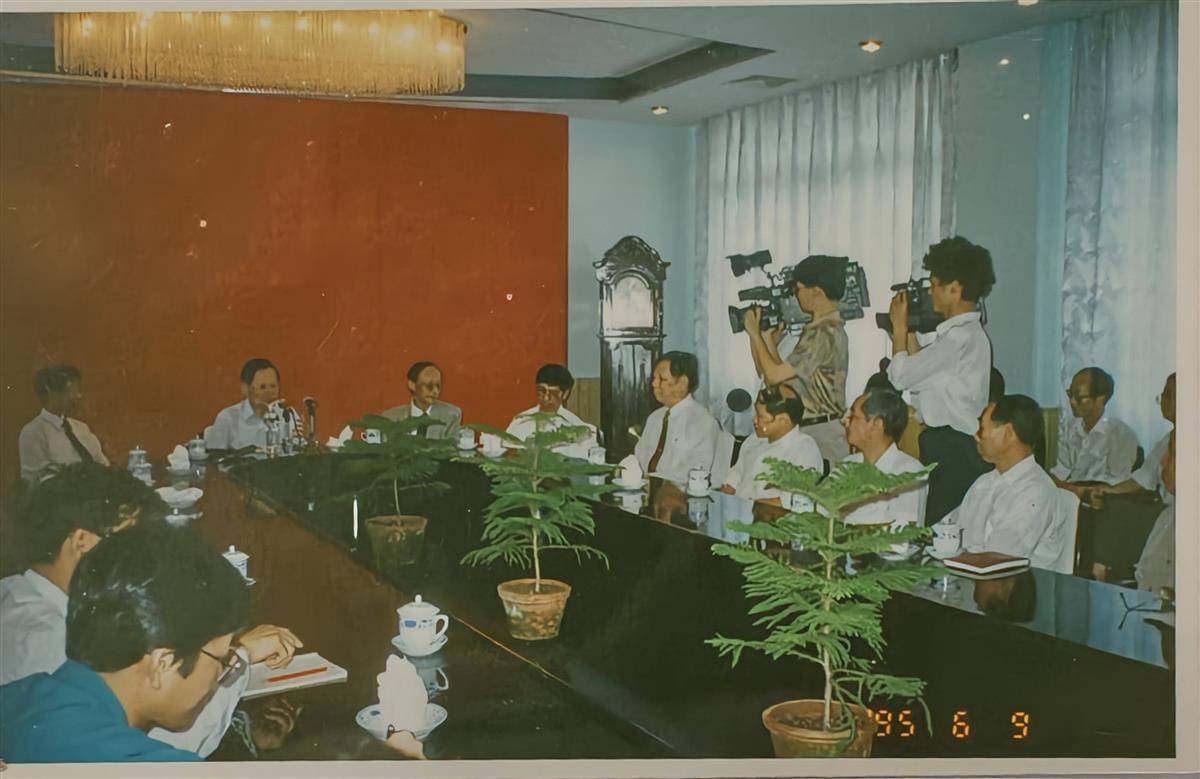 (图为杨振宁先生在华中理工大学南一楼会议室与校领导交流座谈,左一摄像为本文作者)