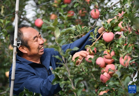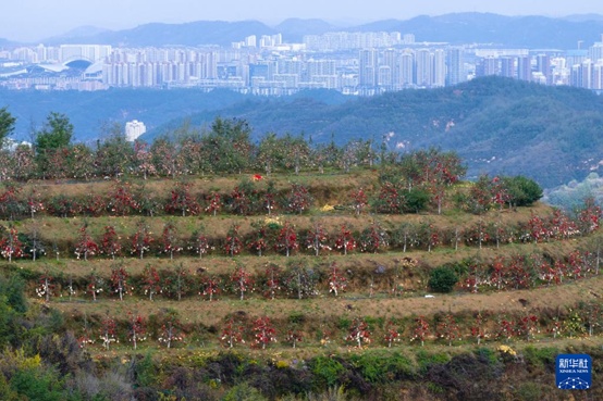 延安市宝塔区桥沟街道烟洞沟村苹果园景色。图源:新华社
