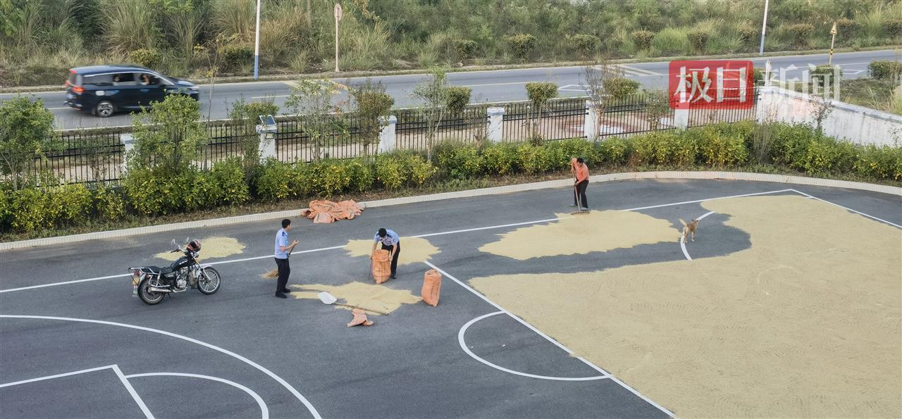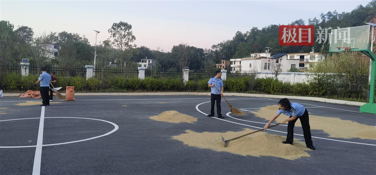 10月21日,极目新闻记者联系杰村派出所,民警刘明告诉记者,派出所院子里的大坪平整宽敞,大概两个篮球场那么大,去年就有村民来晒稻谷。