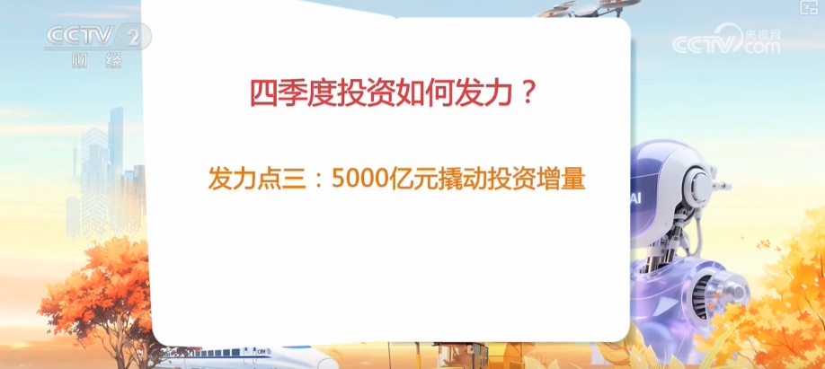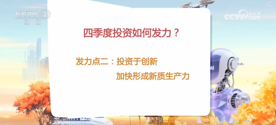 国家信息中心经济预测部产业经济研究室主任魏琪嘉介绍,四季度整个投资的重点领域,很多集中于民生项目建设方面,包括城市更新改造,地下管廊改造,包括停车场建设以及高标准农田等,这些事关民生的一些重点的领域,实现这种投资于物与投资于人的这种高效协同,更多的投资于人。