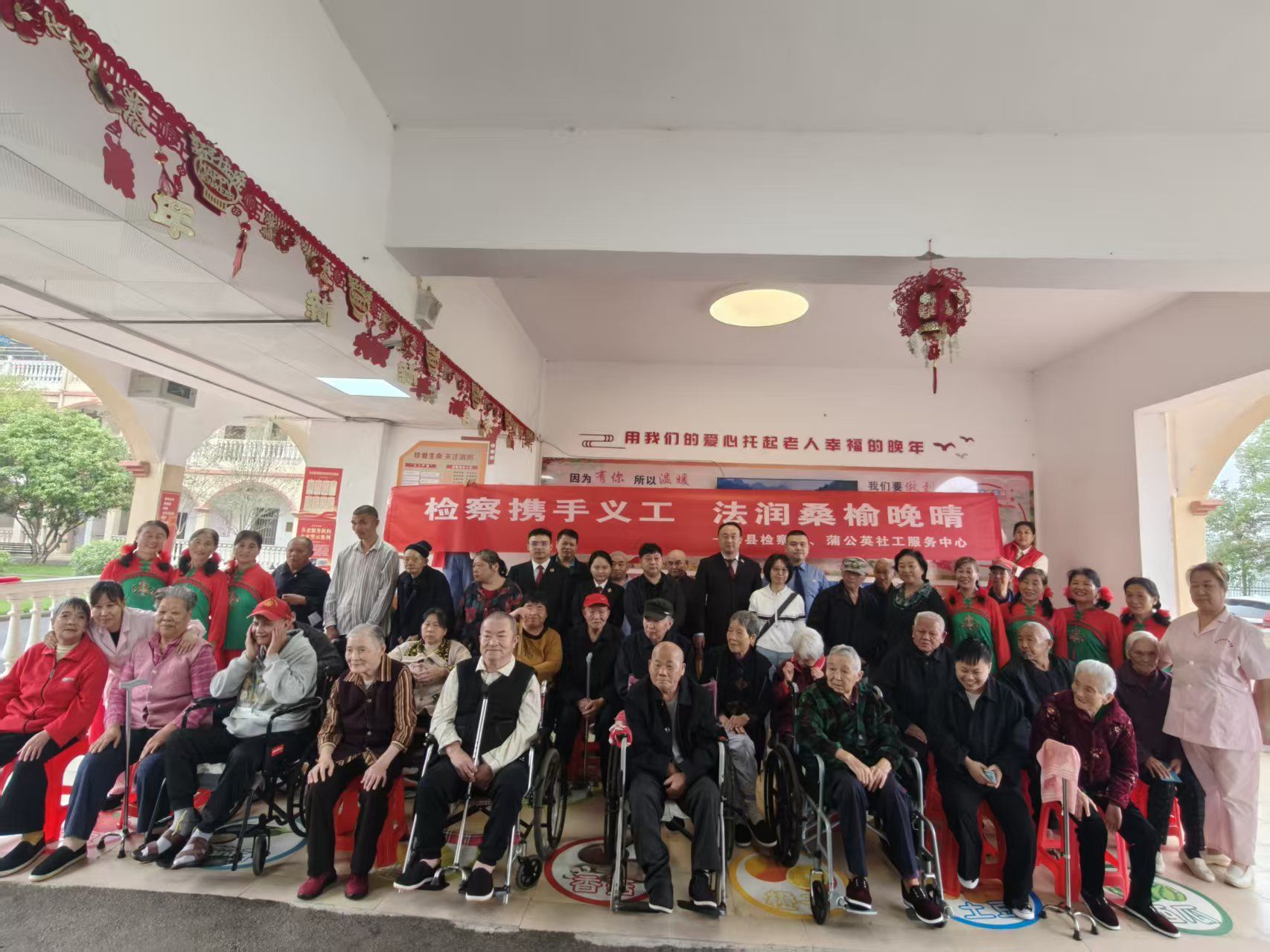 荆楚网(湖北日报网)讯(通讯员 范亚蒙)为弘扬中华民族孝亲敬老传统美德,切实维护老年人合法权益。10月17日,嘉鱼县人民检察院行政检察、公益诉讼检察、刑事检察等部门联合县妇女联合会、蒲公英社工协会走进县社会福利院,开展主题为“依法护航,安享银龄”的“敬老月”活动,为老年群体送上贴心的法治保障,呈现丰富多彩的娱乐活动。
