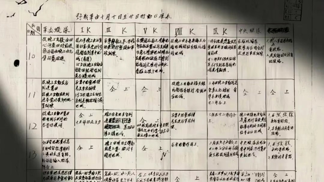 《野战军由十月十日至二十日行动日程表》,这是红军长征发布的第一份行动计划。