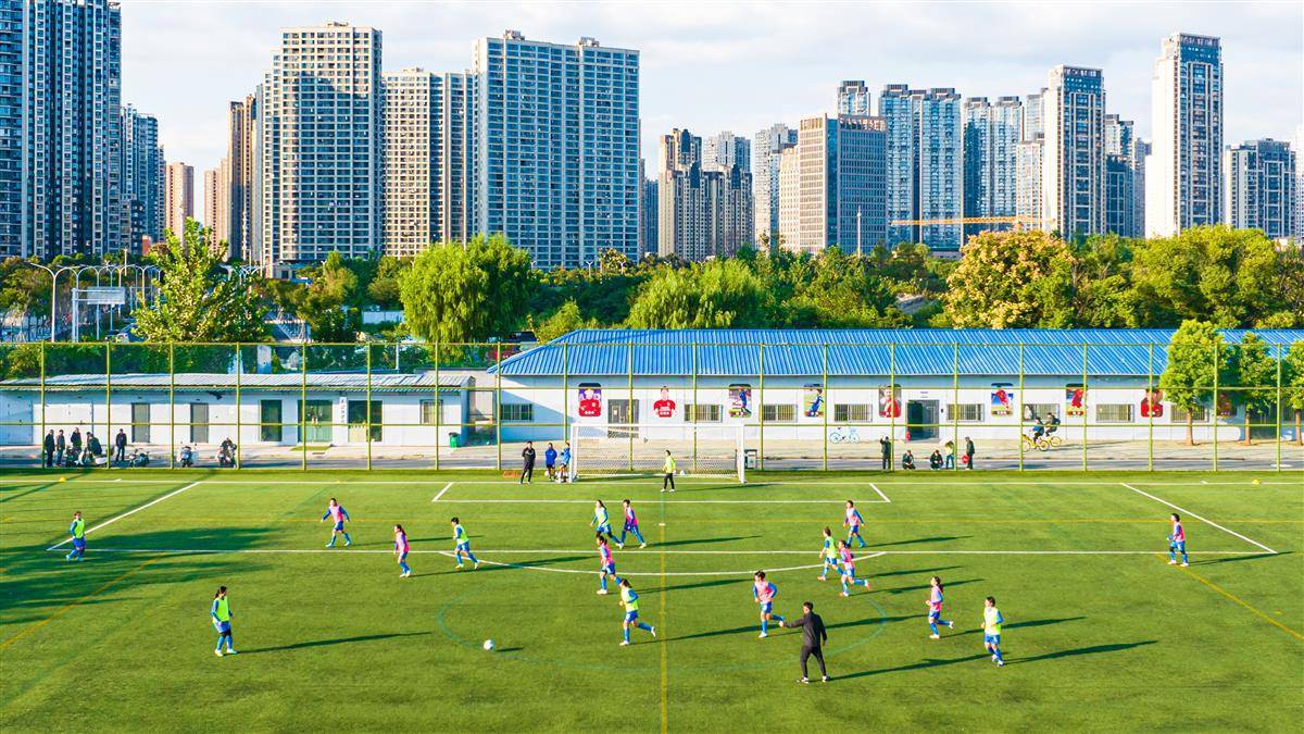 10月22日,市民趁着好天气,在武汉塔子湖体育中心踢足球,与久违的阳光来个“拥抱”。(湖北日报全媒记者 任勇 摄)