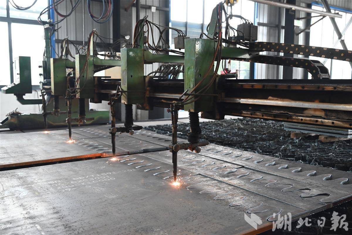 10月22日,走进该集团鄂州产业园,伸缩缝车间一派忙碌,数控机床正切割、打磨钢板,不久,一套265公斤重的伸缩缝装置出炉。这个车间一天能生产10套。“这是梳齿板式伸缩缝装置,具有渐变式的梳齿板,形成3-5度的坡度,能够缓解行车时轮胎与钢板的摩擦声,里面还配有集水袋、倒水板等,能防止异物进入伸缩缝。”湖北交投物流集团致远公司总经理文俊说。