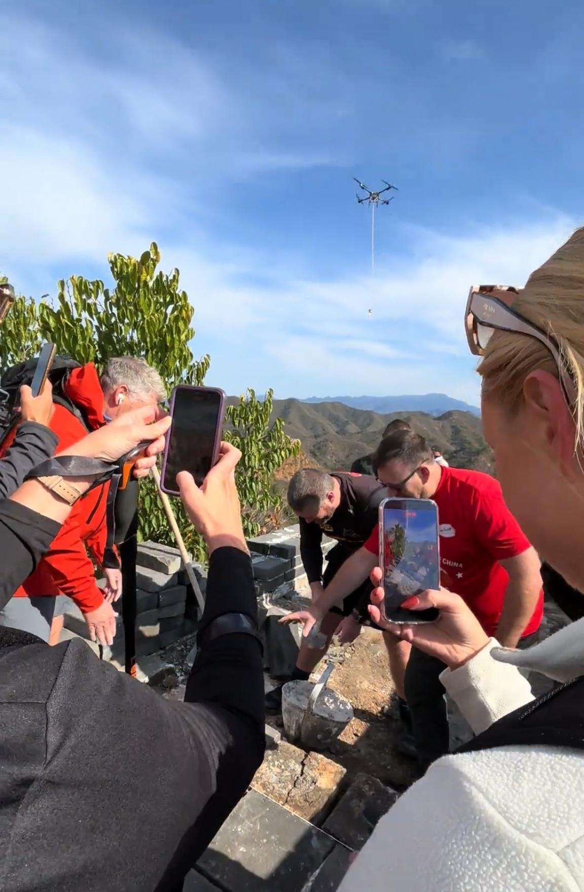 10月21日,有网友发布视频显示,一群外国游客在长城游玩时,遇到无人机吊运材料到维修长城的工地,纷纷掏出手机拍摄,还有一老外体验修长城,将其中一块青砖铺在地面上,引来阵阵喝彩。