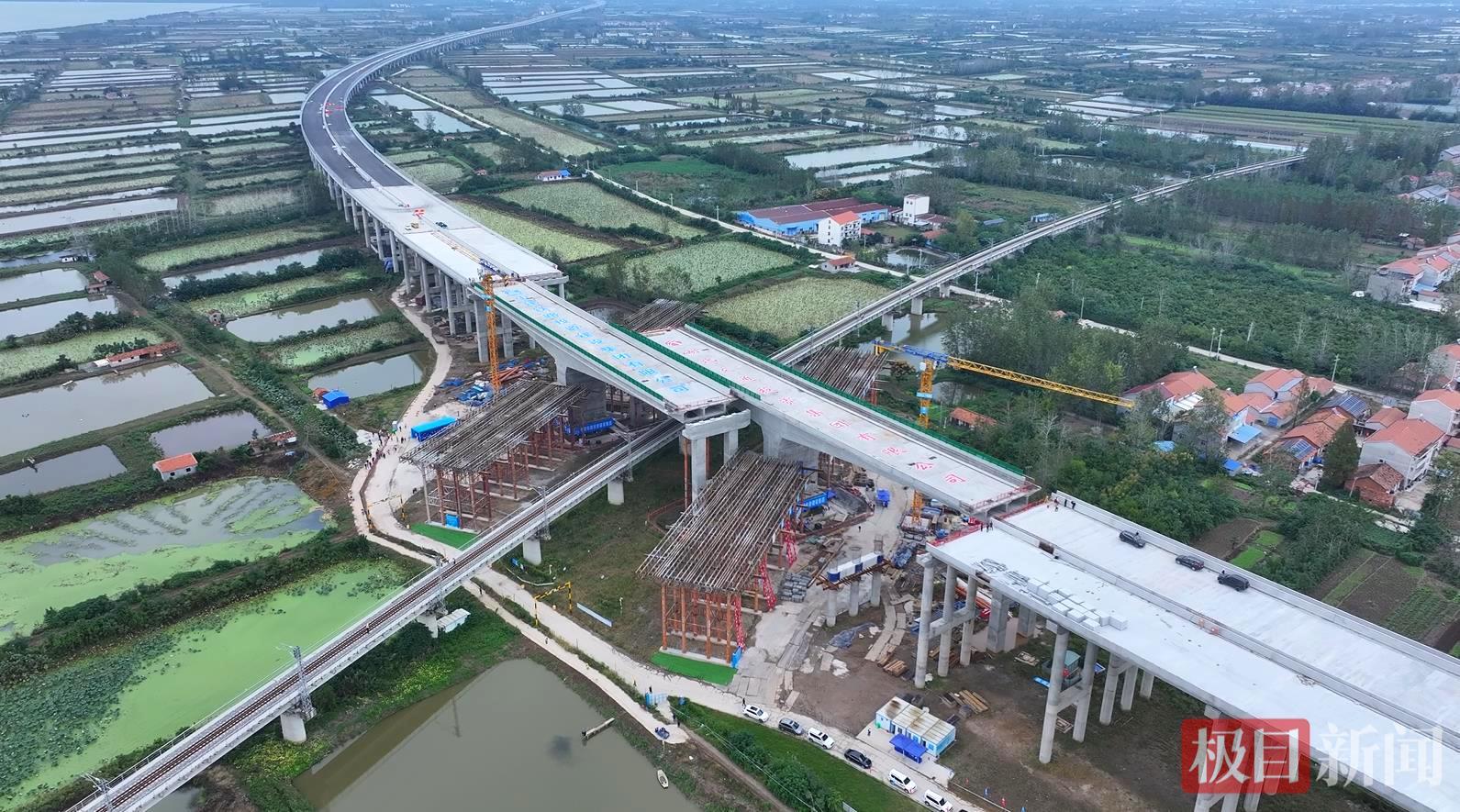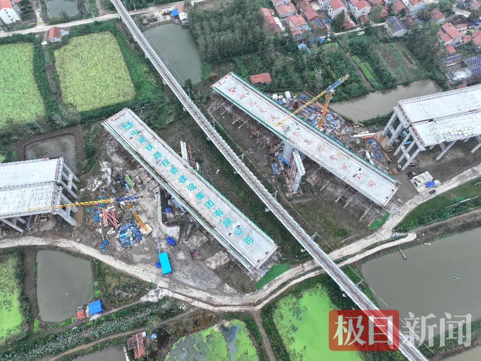 万家咀大桥位于武汉市新洲区,由湖北交投投资建设、中建铁投承建,全长约407米。该桥上跨运营中的武黄铁路,为左右幅分离设计,采用转体施工方式最大限度降低了对铁路运输的影响,有效保障了行车与施工“双安全”。