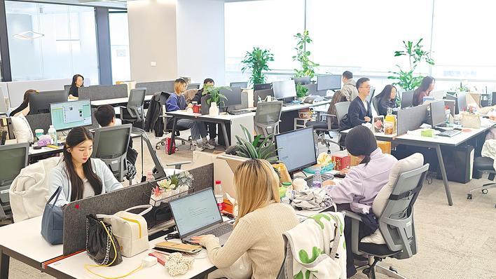 武汉阿里中心面向个人创业者与成长型企业推出共享办公空间,采用灵活月付的工位租赁模式。 (湖北日报全媒记者 陈少哲 摄)