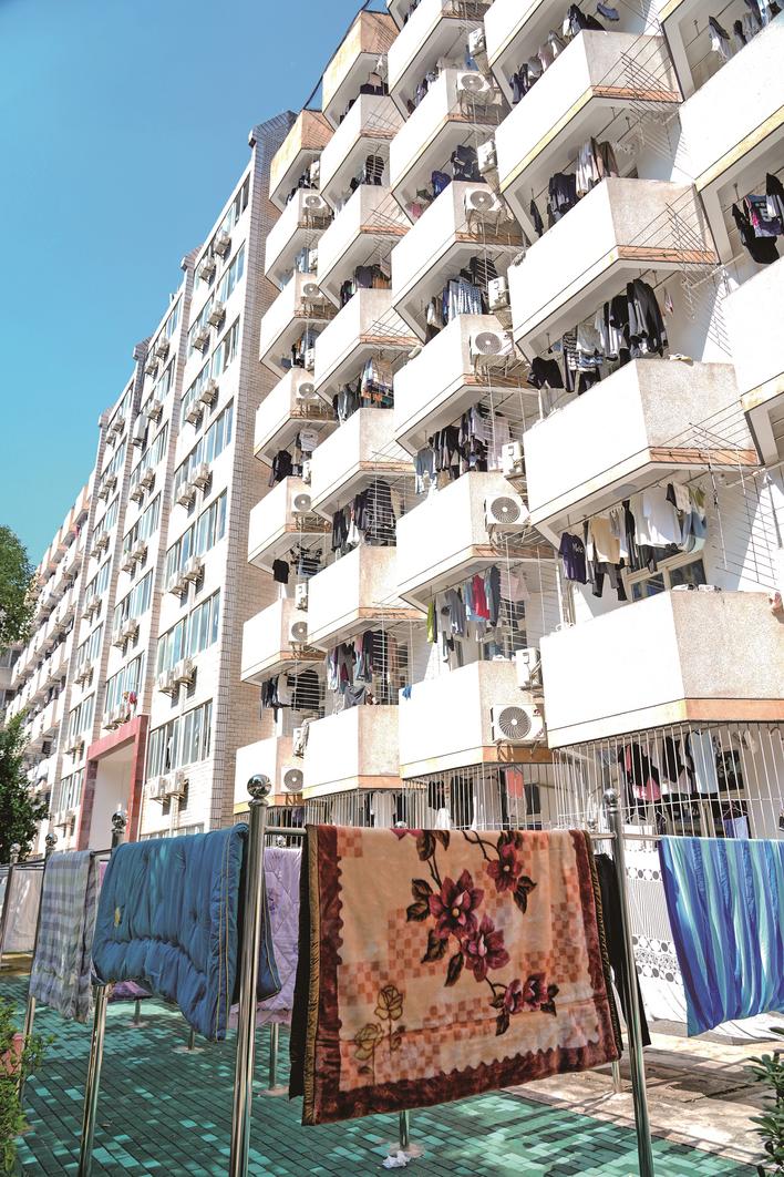 经历了近一周阴雨天气,22日江城放晴,不少市民赶紧抱出家里的被子,给冬被晒个“日光浴”。图为武汉工程大学宿舍阳台上、校园空地上,衣被晾晒得满满当当。 楚天都市报极目新闻记者李辉摄