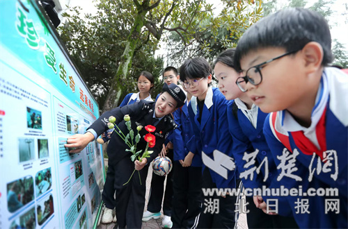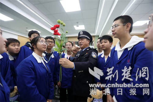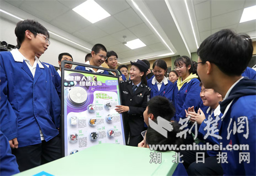 禁毒民警与Al禁毒宣传展板走进市兰台中学。通讯员 供图