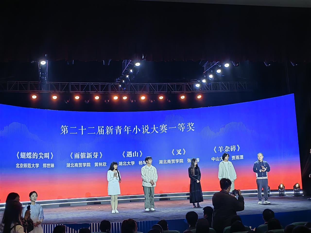 晚会现场,发布了由湖北省作家协会、湖北省学生联合会和湖北大学联合主办的第二十二届新青年小说大赛一、二、三等奖名单。第二十二届新青年小说大赛共征得稿件352篇,经评审,北京师范大学郑世琳《蝴蝶的尖叫》等5篇作品荣获一等奖,8篇作品荣获二等奖,10篇作品荣获三等奖;武汉大学等8所高校获“优秀组织奖”,吴昊琳等8位教师获“优秀指导教师”称号。