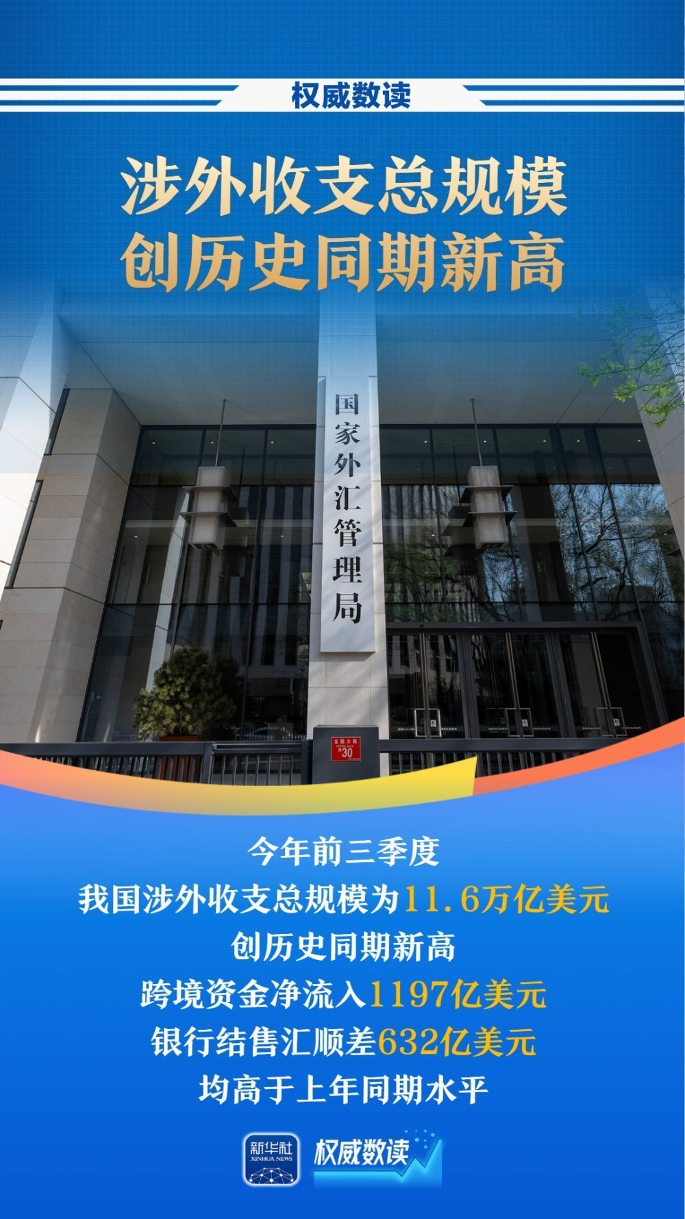 国家外汇管理局10月22日发布数据显示,9月企业、个人等非银行部门跨境收入和支出合计为1.37万亿美元,环比增长7%。经常项下和资本项下跨境收支均保持增长态势,显示我国涉外经济稳健发展。前三季度我国涉外收支总规模为11.6万亿美元,创历史同期新高。