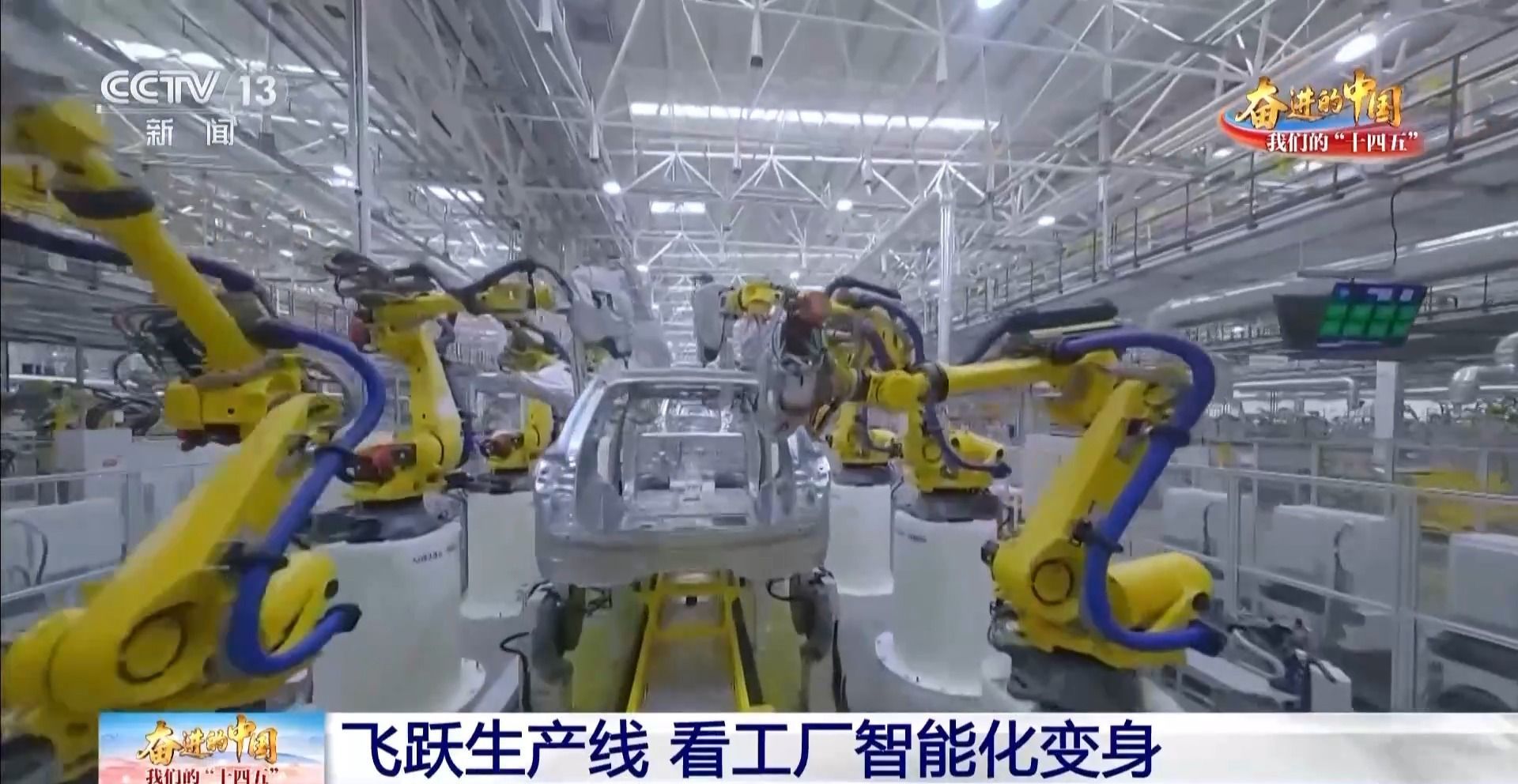 在重庆一家汽车生产工厂的产线上有超3000台机器人,这里可以实现关键工序100%自动化,还有超1000个AI视觉检测点,零件有没有瑕疵AI数秒内就能判断。