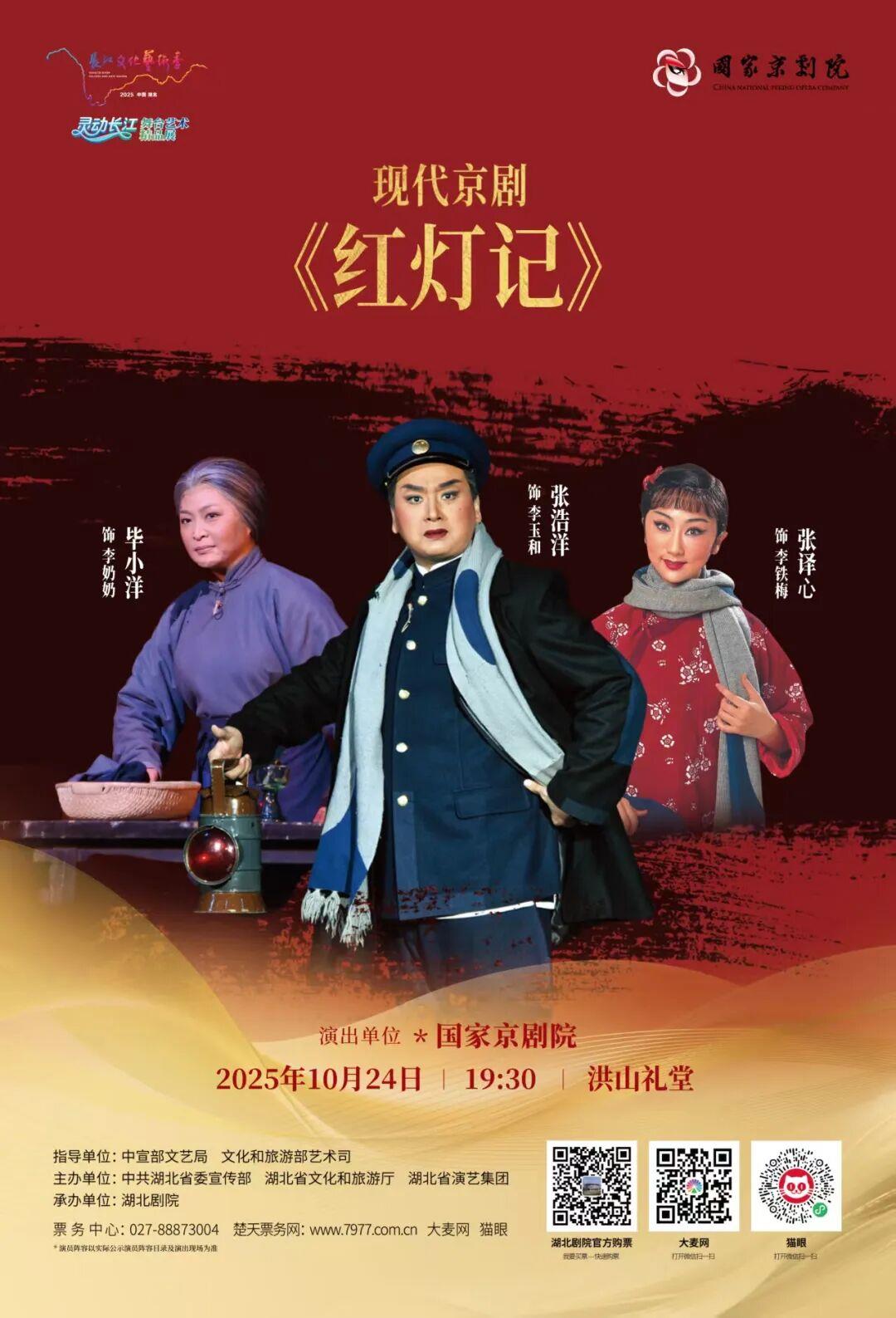 作为2025长江文化艺术季“灵动长江”舞台艺术精品展的收官之作,国家京剧院将于10月24日、25日连续两晚,在洪山礼堂为广大戏迷观众带来经典作品《红灯记》及阵容豪华的《京剧名家名段演唱会》。