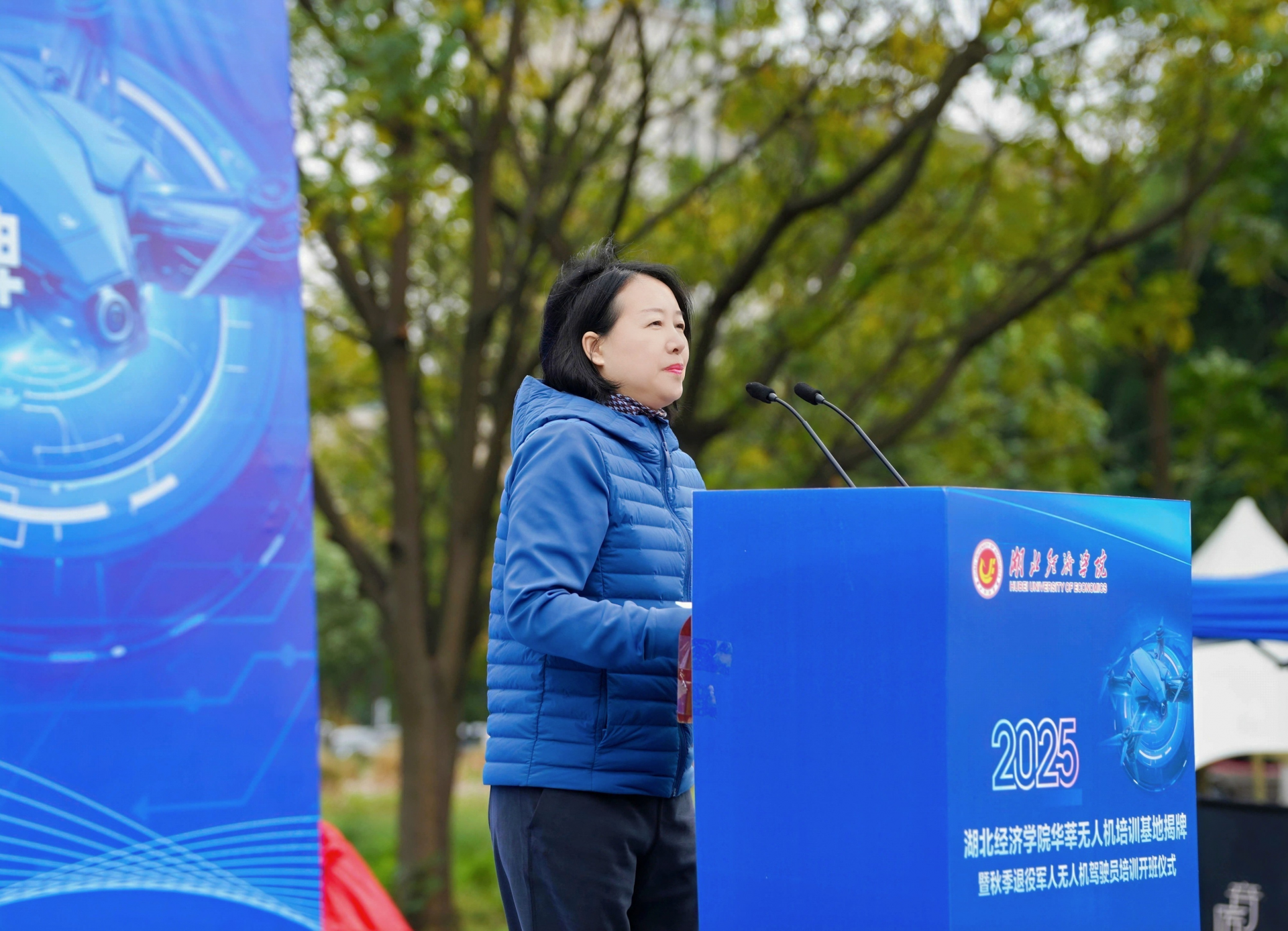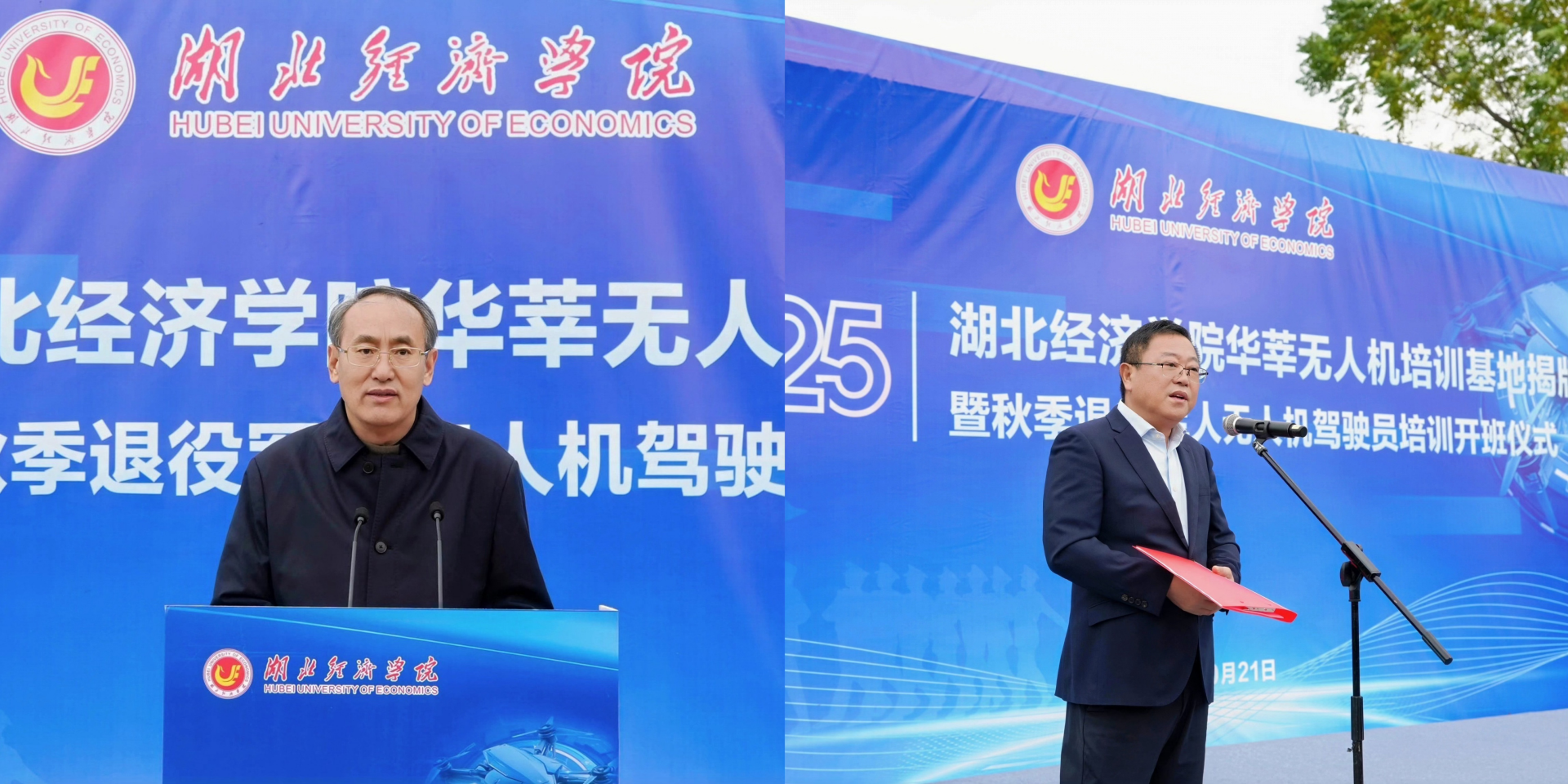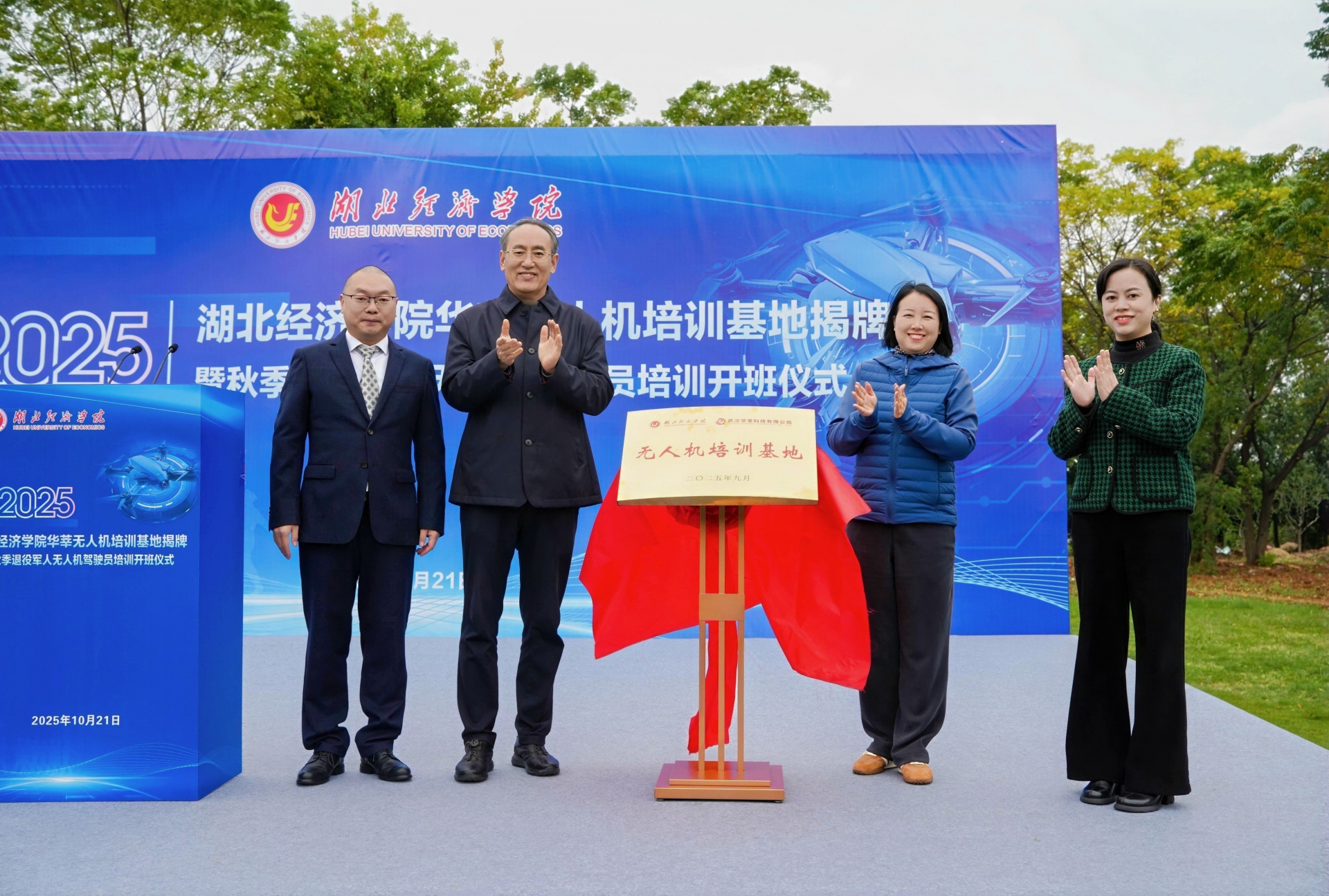 10月21日,基地揭牌仪式暨2025年秋季退役军人无人机驾驶员培训开班典礼隆重举行。湖北省退役军人服务中心处长陈荷香、三级调研员李峰,武汉市退役军人事务局就业创业处主任石凤,湖北经济学院党委常委、副校长张国安,教务处处长戴化勇,学生工作处处长商守卫,工商管理学院副院长陈金波,继续教育学院院长张治武以及共建单位武汉华莘科技有限公司董事长谭绍军、湖北康士伯生物科技集团有限公司技术总监沈作为等有关领导和全体参训学员齐聚一堂,共同开启退役军人技能转型与职业发展新征程。