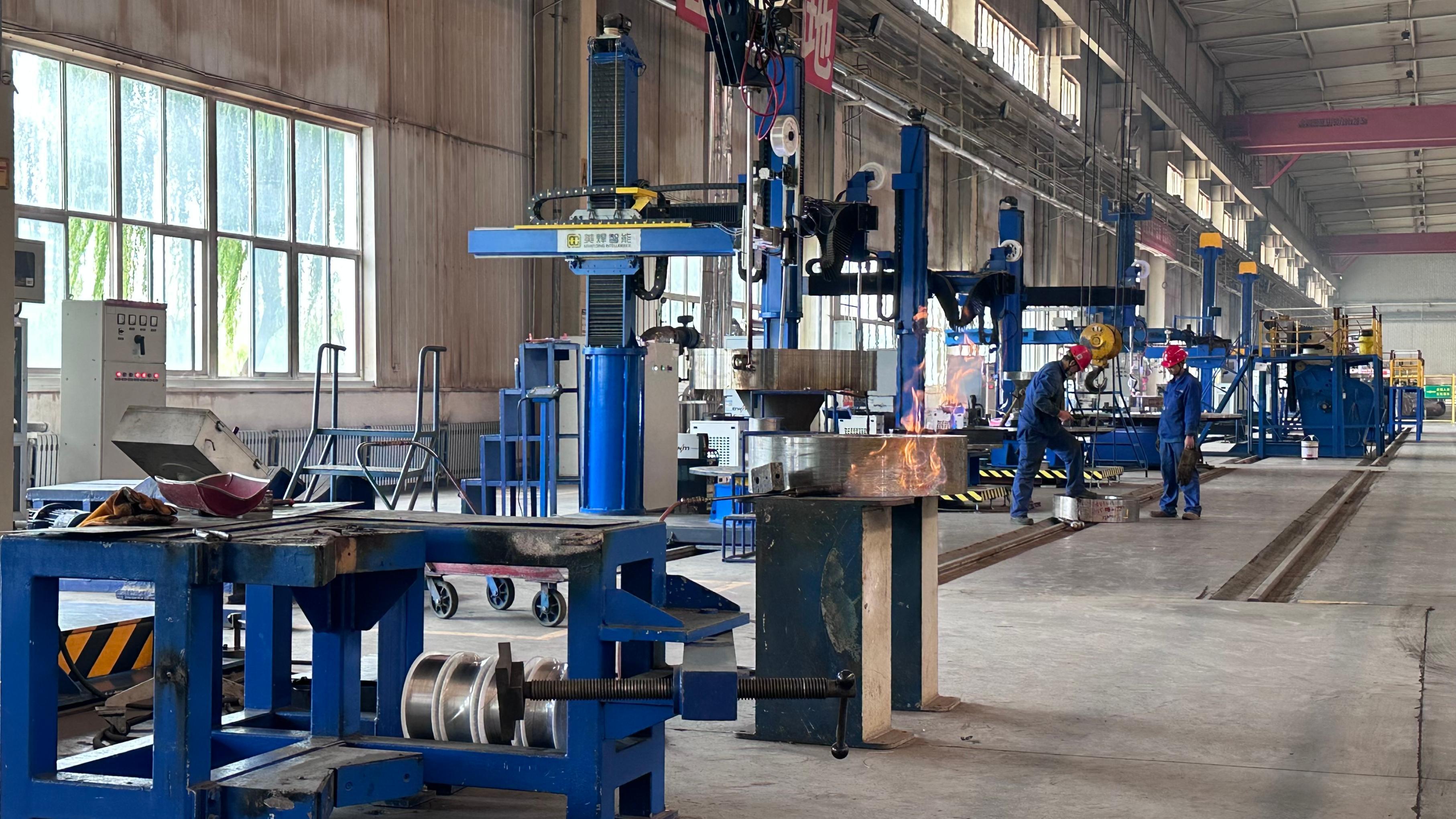 车间内,自动焊接设备正在进行焊接工作。人民网记者王绍绍摄