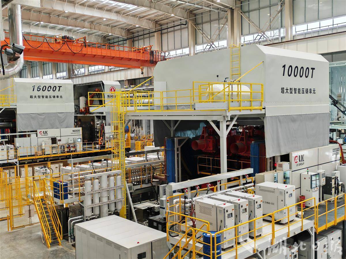 该厂占地面积4.7万平方米,厂内矗立着两台堪称“工业巨无霸”的机器——16000吨与10000吨一体化压铸机。其中,16000吨压铸机为国产自主设计制造。