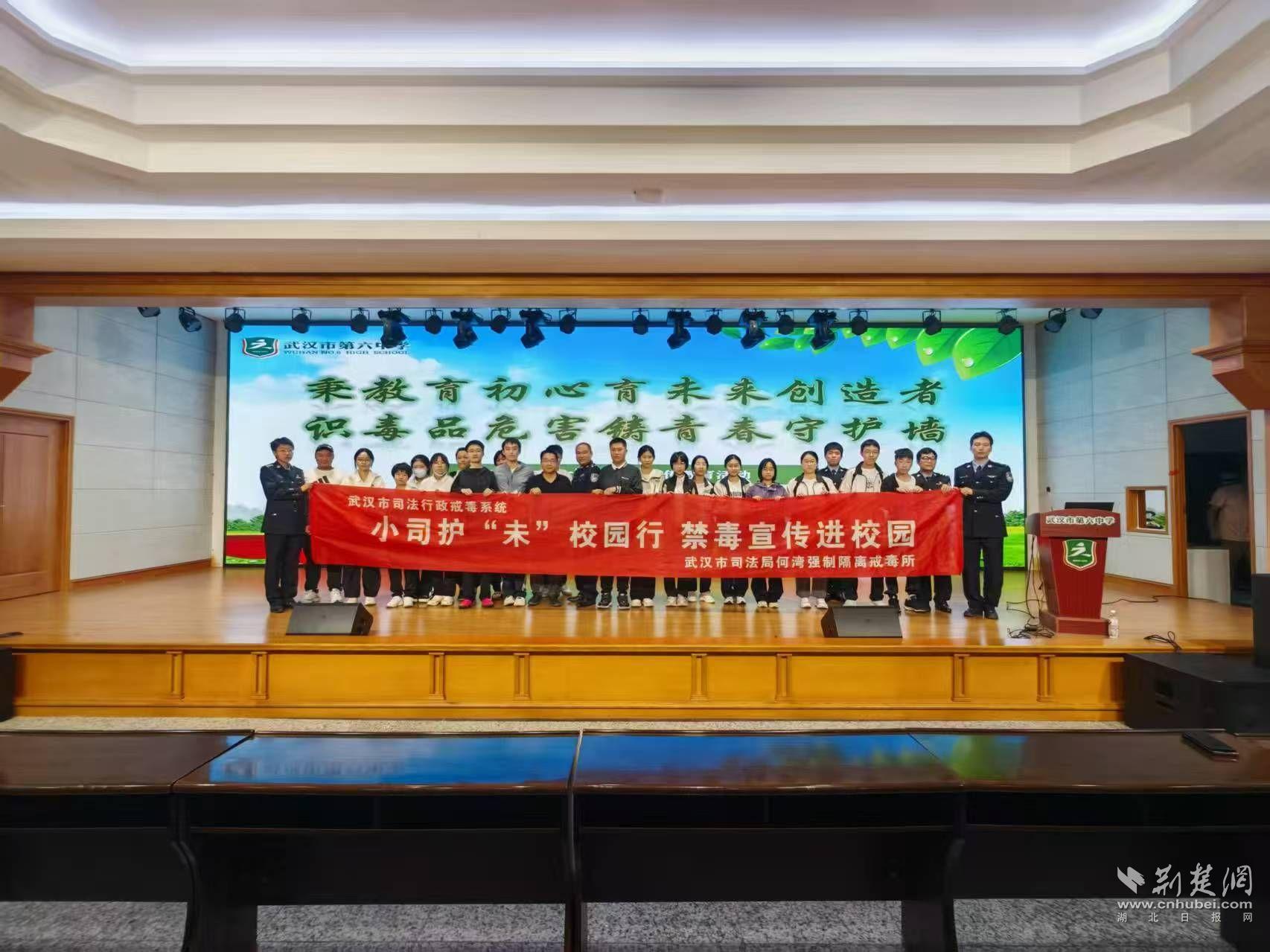 荆楚网(湖北日报网)讯(通讯员 吕刚)为切实增强青少年识毒、防毒、拒毒的意识和能力,筑牢校园禁毒防线,10月17日下午,武汉市司法局第二强制隔离戒毒所走进武汉市第六中学,开展了一场内容丰富、形式多样的禁毒宣传教育活动,将禁毒的种子深植于学生心中,护航青少年健康成长。