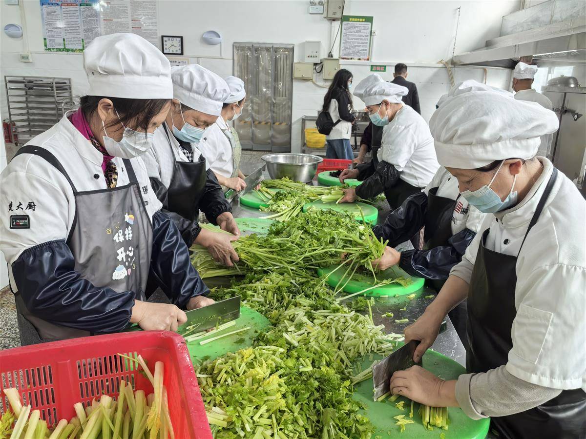 来自南漳县武安镇的学生家长柏榕庆曾是一名全职陪读妈妈,去年应聘入职校食堂。“洗菜、切菜、打菜都是学生家长,大家都是一条心,让孩子吃得更好。”
