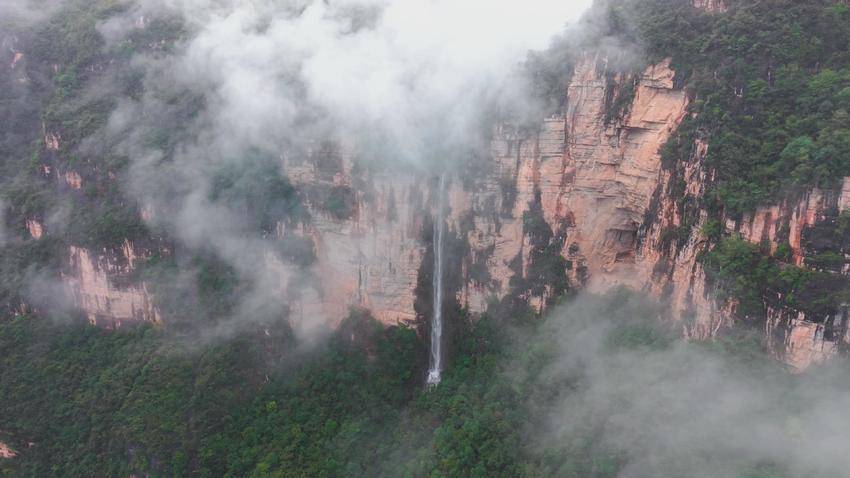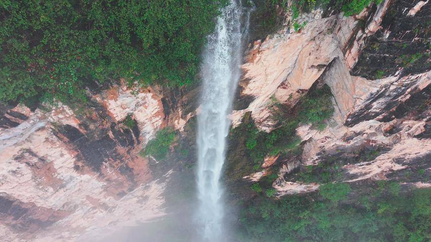 湖北日报客户端讯(通讯员杨韬、刘涛、胡登基)近日,保康县马桥镇高桥河村发现一处高约135米的天然瀑布,因其崖壁轮廓宛如蝴蝶展翅,勾勒出别具一格的峡谷瀑布风貌。
