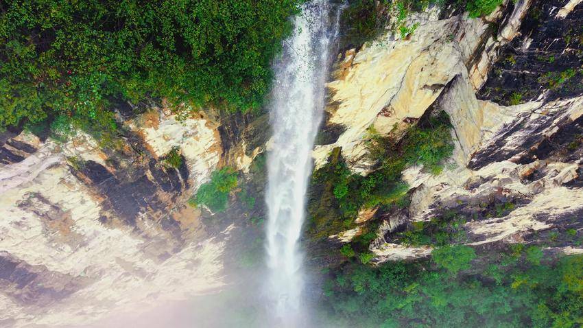 这处瀑布隐匿于喀斯特地貌峡谷之间,崖壁上双翅舒展的蝴蝶形态自然天成,水流从“蝶翼”凹陷处飞泻而下。在雨季,水流奔涌,恰似白练悬空;旱季时,细流婉约,尽显灵秀之美,与恩施蝴蝶崖“雨季澎湃、旱季灵秀”的景观特征高度一致。