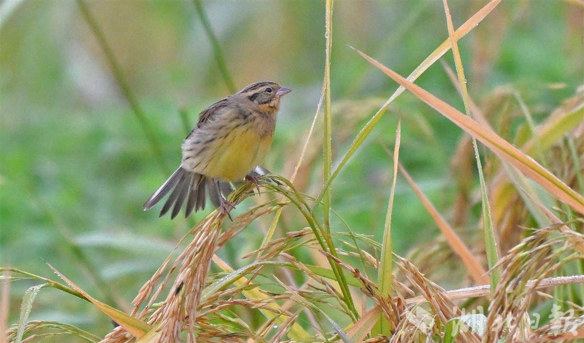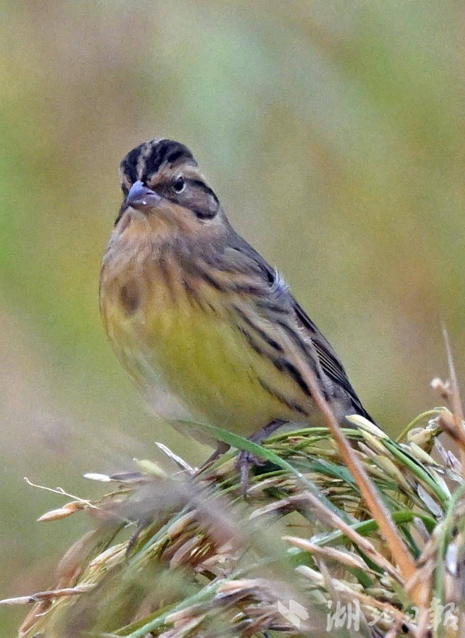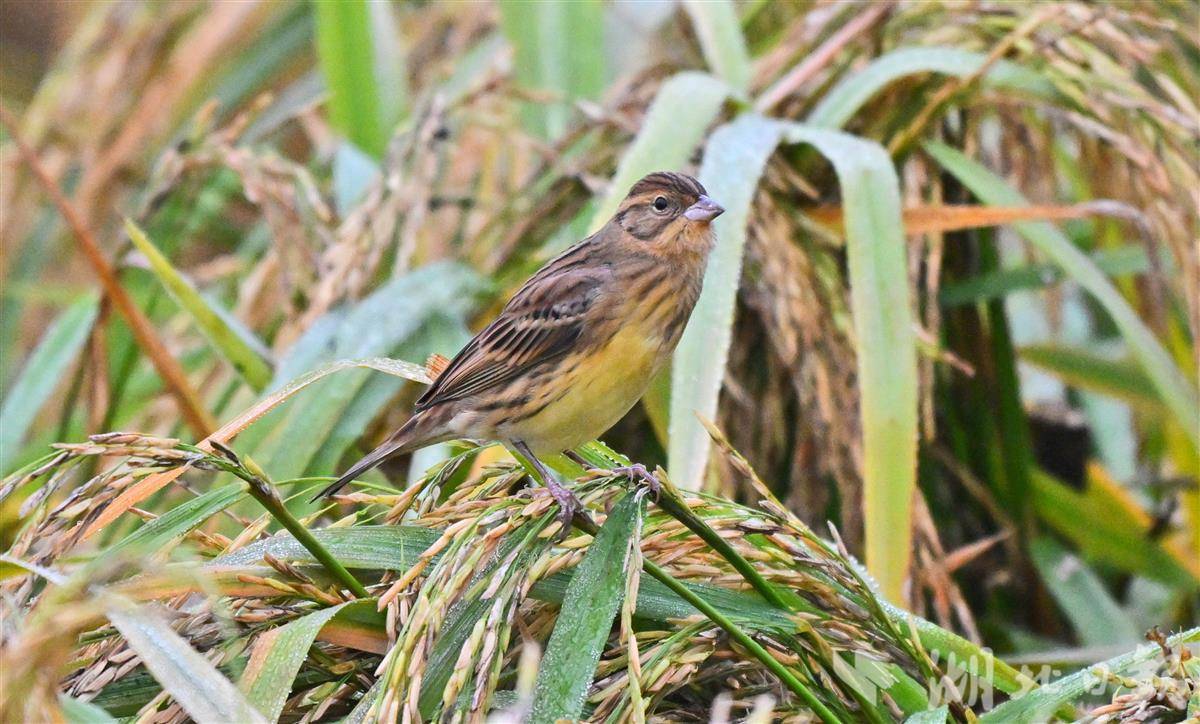 10月23日,记者于宜昌市卷桥河湿地一片观赏性稻田中,拍摄到国家一级重点保护野生鸟类——黄胸鹀(俗称“禾花雀”)。该鸟属于典型的河谷草甸灌丛草地鸟类。黄胸鹀于2017年被世界自然保护联盟提升为“极危”等级,2021年起被正式列为中国国家一级重点保护野生动物。近年来,宜昌市持续推进湿地生态保护与修复,全市湿地面积达8.24万公顷。卷桥河湿地通过植物修复、生物清淤及自然护坡等措施,重构了健康稳定的岸线生态系统,该湿地已连续四年观测到成群的黄胸鹀在迁徙途中经停此地。(湖北日报全媒记者 刘曙松 摄)