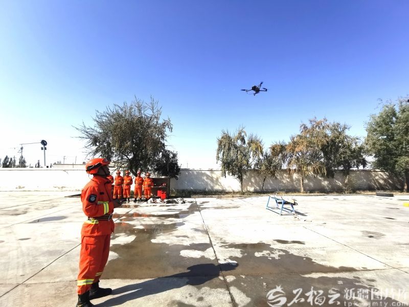 沙雅县森林草原消防应急分队演练无人机火情侦查。石榴云/新疆日报记者 曹华摄