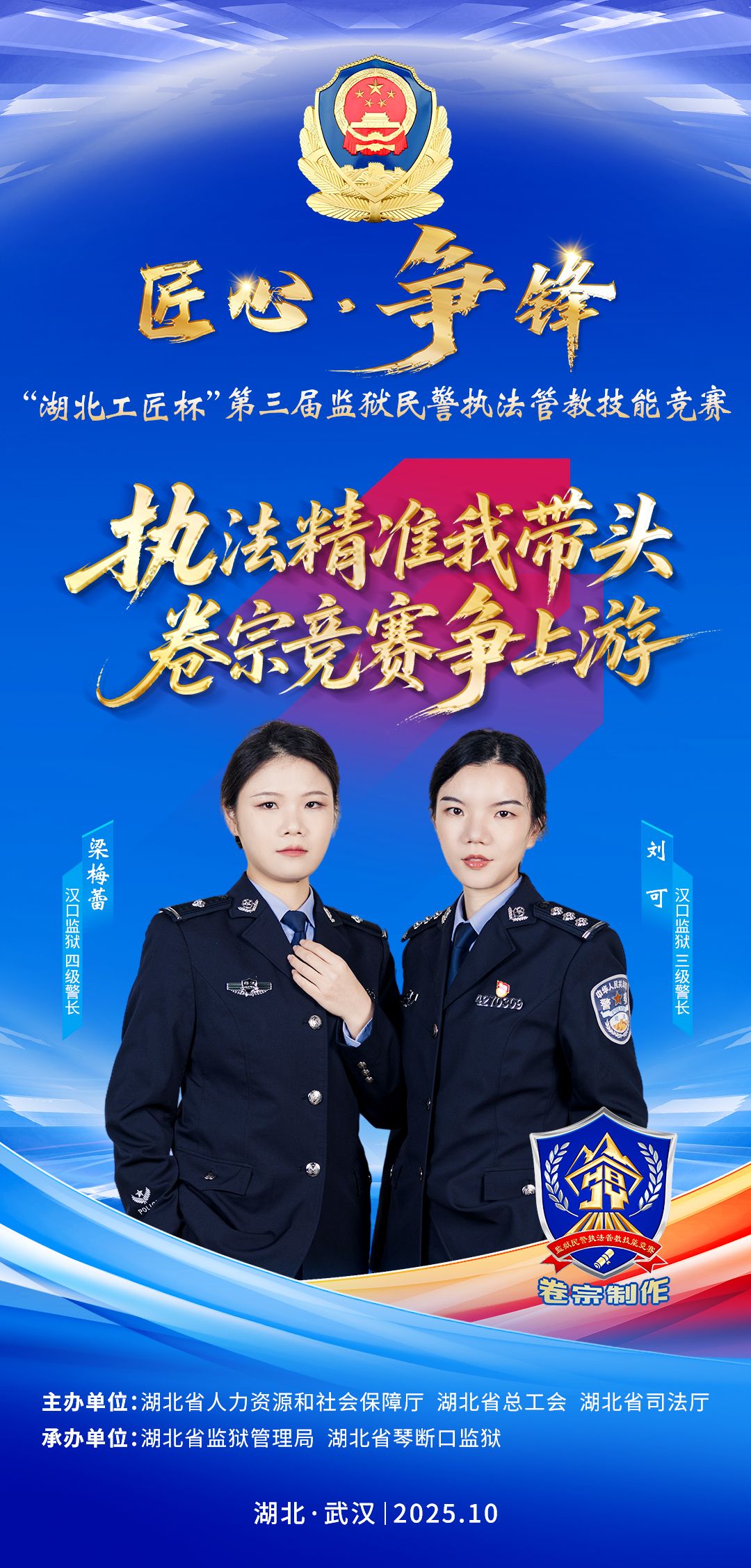 汉口监狱的梁梅蕾、刘可,她们作为业务骨干和办案能手,将“忠诚担当、公正严明”的信条,熔铸于每一件案件的办理,深研于每一条法规的践行。“执法精准我带头,卷宗竞赛争上游”是她们坚定的信念与不变的目标。期待她们在总决赛的舞台上赛出实力,展现汉口女警的奋斗之姿、青春风采。
