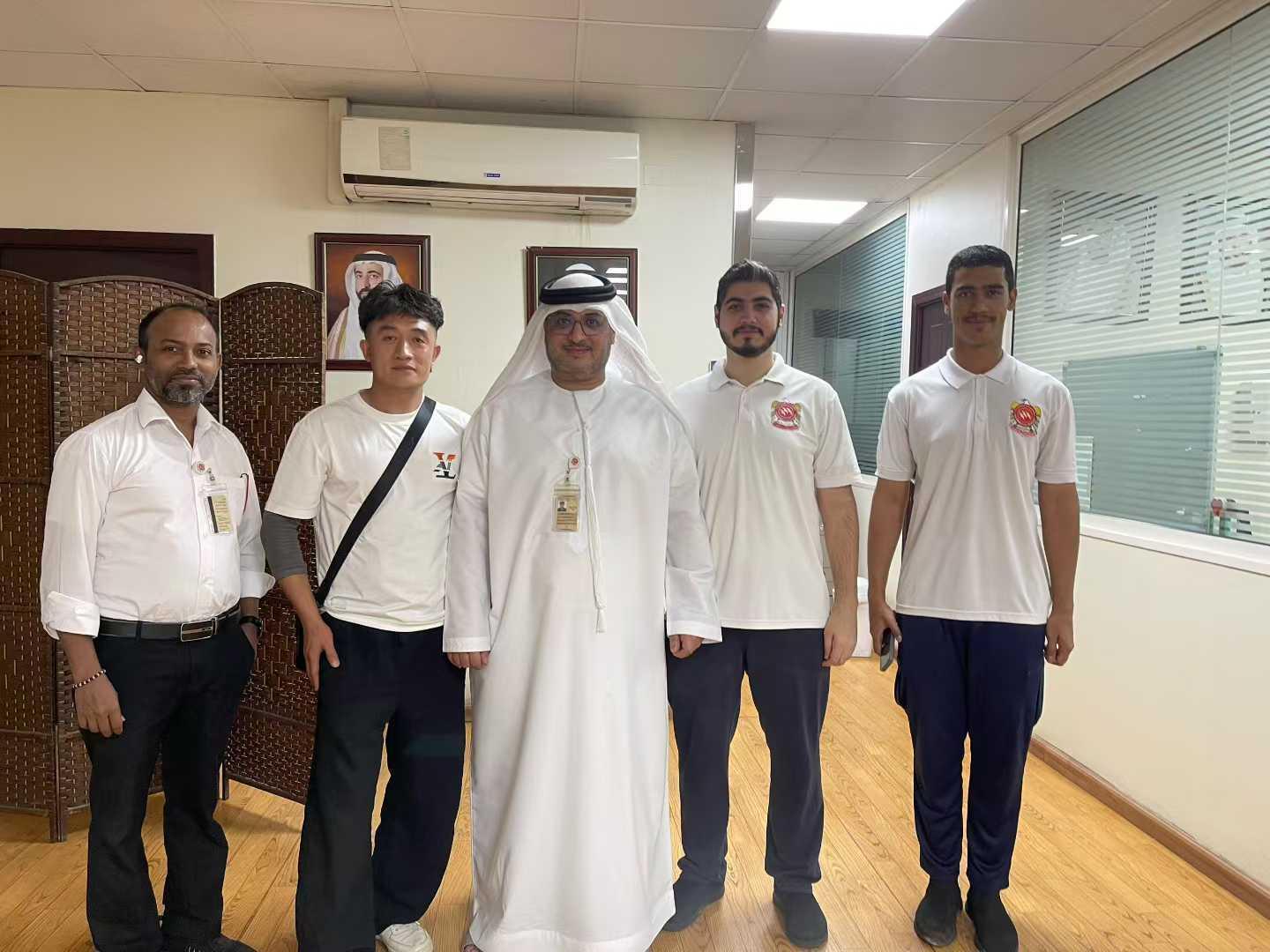 张正明(左二)抵达阿联酋后与当地人的合影(图源受访者)