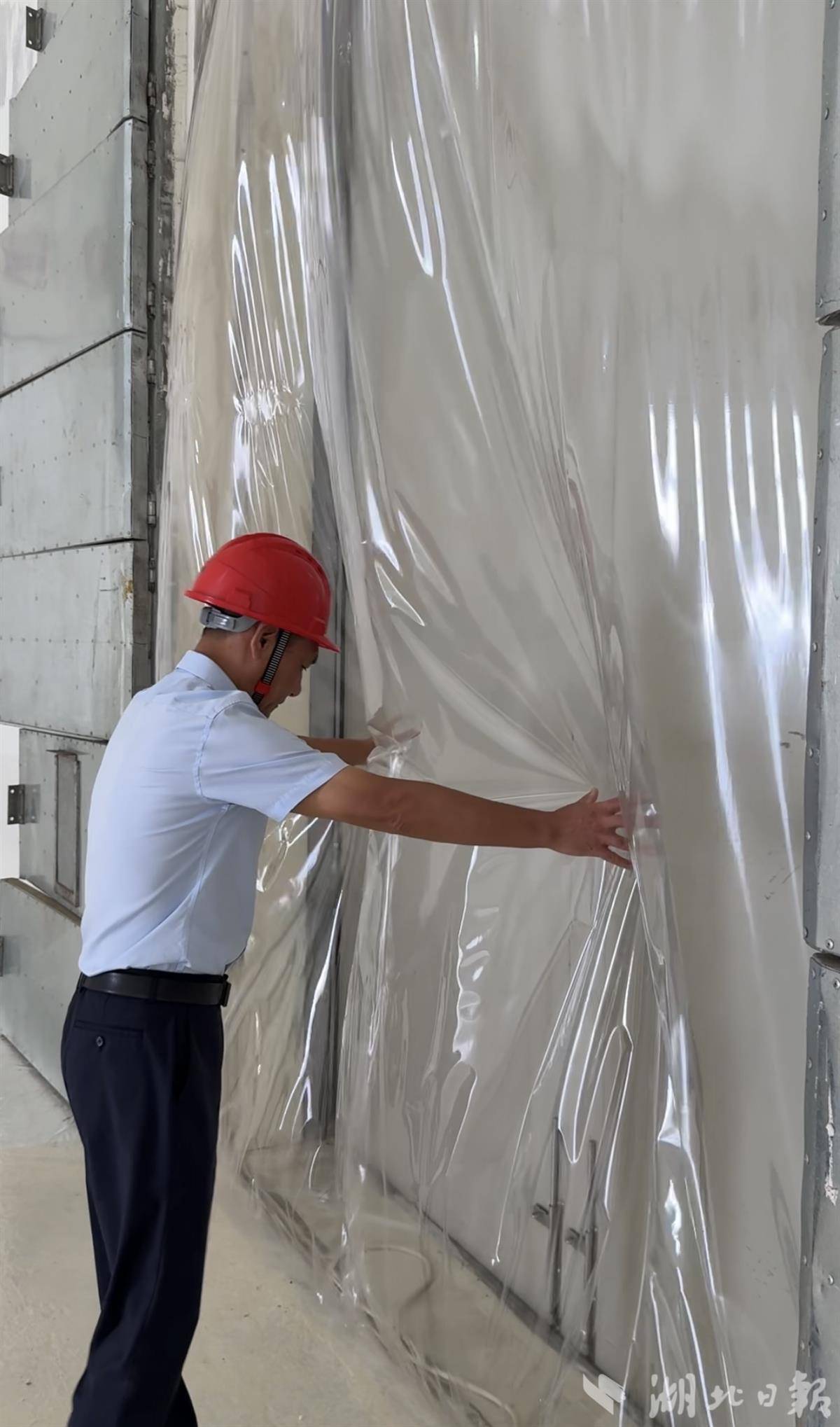 粮仓的挡粮门也用“保鲜膜”覆盖。