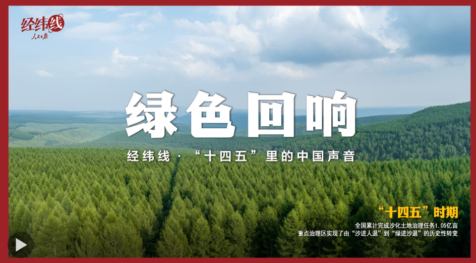 “中国式现代化是人与自然和谐共生的现代化。”当呼啸的风在沙漠崛起的“光伏长城”前降低了分贝,当塞罕坝百万亩林海的涛声谱写向绿而行的乐章。听!这是“十四五”时期的绿色回响。