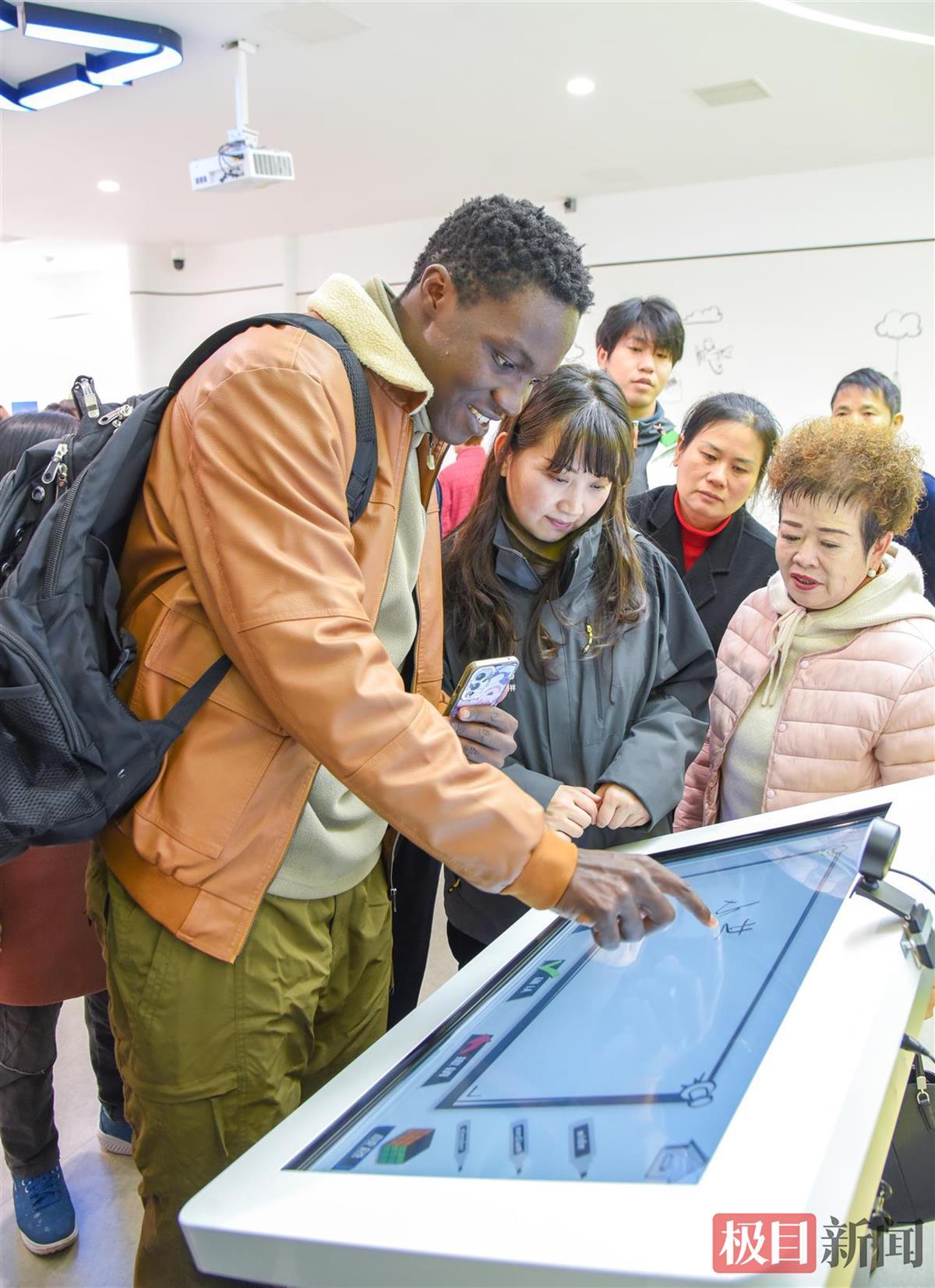 10月22日,荆州市生活垃圾分类企业开放日活动现场,喀麦隆驻华留学生K.S.Pavel在荆州市垃圾分类宣传教育基地参与互动体验(极目新闻记者 黄志刚 摄)