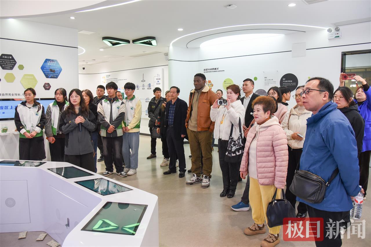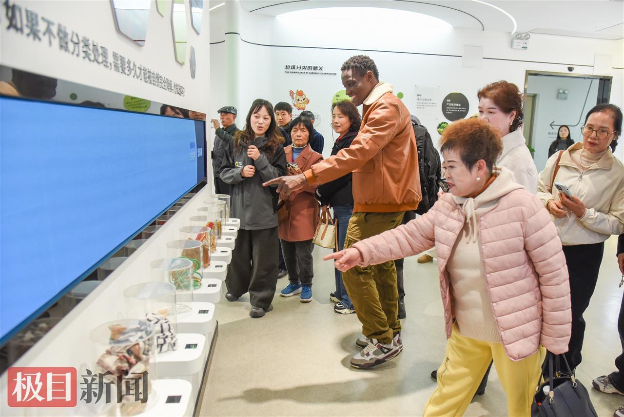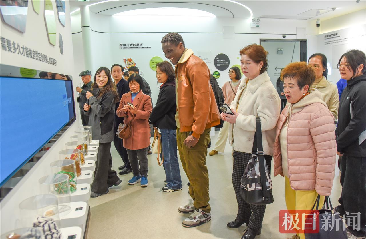 10月22日,荆州市生活垃圾分类企业开放日活动现场,K.S.Pavel和参与者在荆州市垃圾分类宣传教育基地参与互动体验(极目新闻记者 黄志刚 摄)
