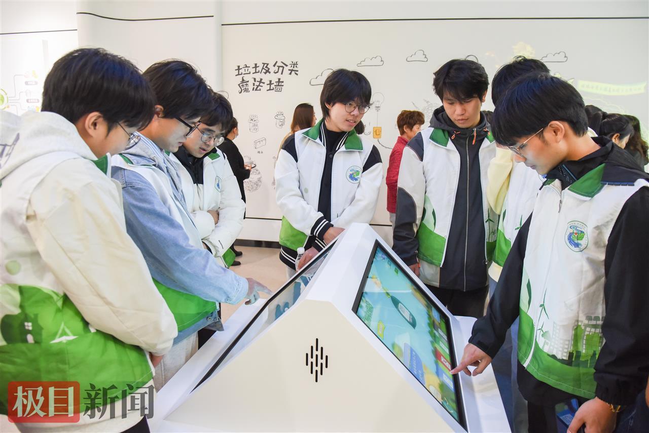 10月22日,荆州市生活垃圾分类企业开放日活动现场,长江大学文理学院“绿动荆江”环保志愿服务队队员在荆州市垃圾分类宣传教育基地参与互动体验(极目新闻记者 黄志刚 摄)