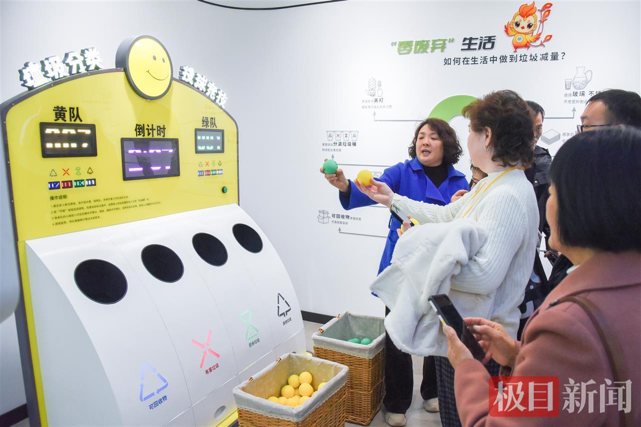 10月22日,荆州市生活垃圾分类企业开放日活动现场,社区居民代表在荆州市垃圾分类宣传教育基地参与互动体验(极目新闻记者 黄志刚 摄)