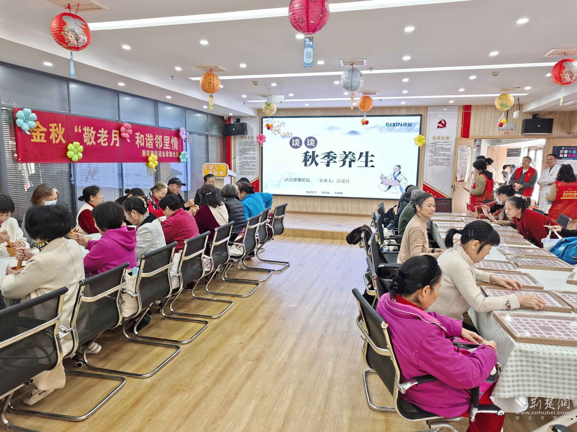 荆楚网(湖北日报网)讯(记者 何婧 通讯员 顾蝶)10月23日上午,江汉区唐家墩街道金家墩社区活动室里暖意融融,一场主题为“情满重阳,乐享晚晴”的重阳节活动在欢声笑语中拉开序幕。活动内容丰富、形式多样,既有文化体验的雅趣,又有健康服务的贴心,更有互动游戏的欢乐,让居民们在节日氛围中感受温情、共享美好。