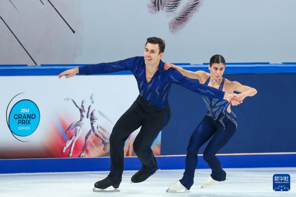 10月24日,意大利组合萨拉·孔蒂(右)/尼科洛·马西在比赛中。最终,他们暂列第二名。