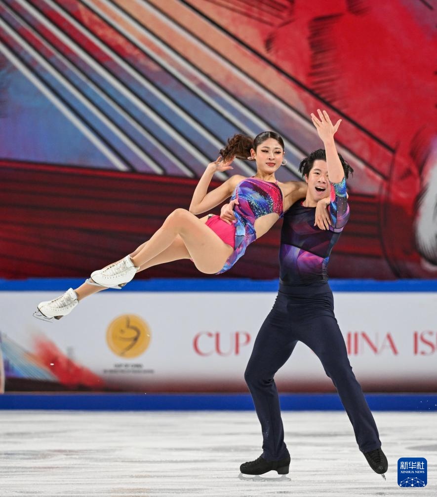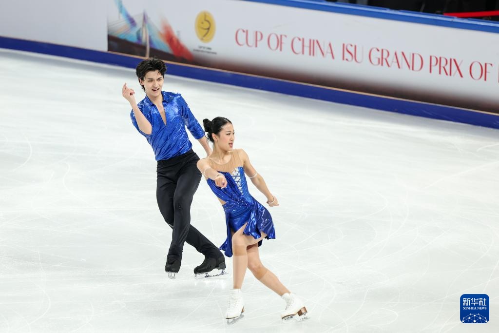 10月24日,中国组合肖紫兮(右)/何凌昊在比赛中。最终,他们暂列第十。