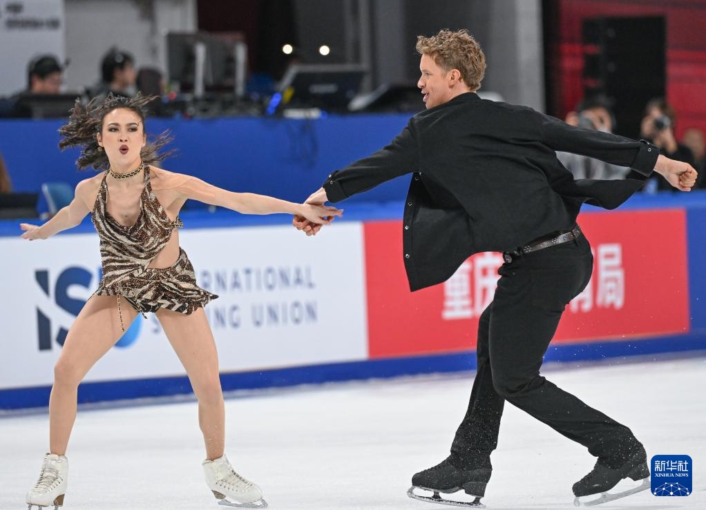 当日,2025年中国杯世界花样滑冰大奖赛冰上舞蹈韵律舞比赛在重庆华熙文化体育中心举行。