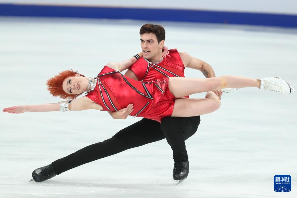 10月24日,中国组合肖紫兮(左)/何凌昊在比赛中。最终,他们暂列第十。