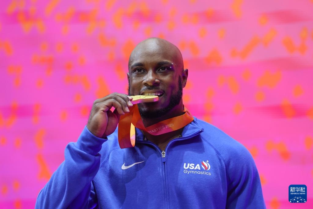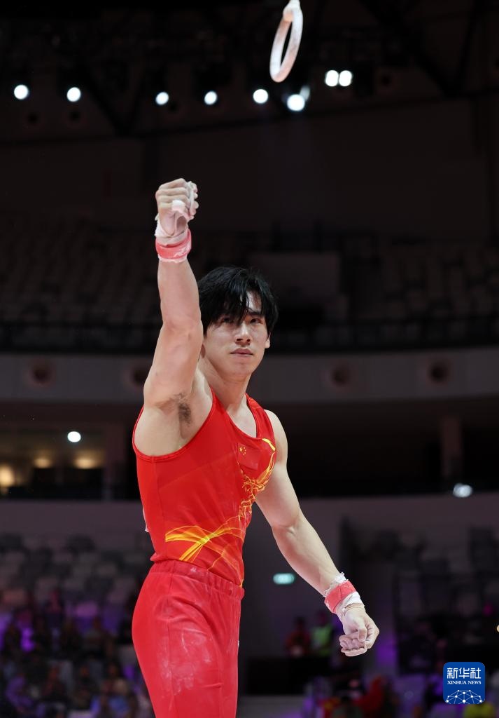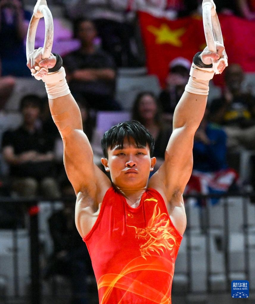 当日,2025年国际体操联合会(FIG)竞技体操世锦赛男子吊环决赛在印度尼西亚雅加达举行。